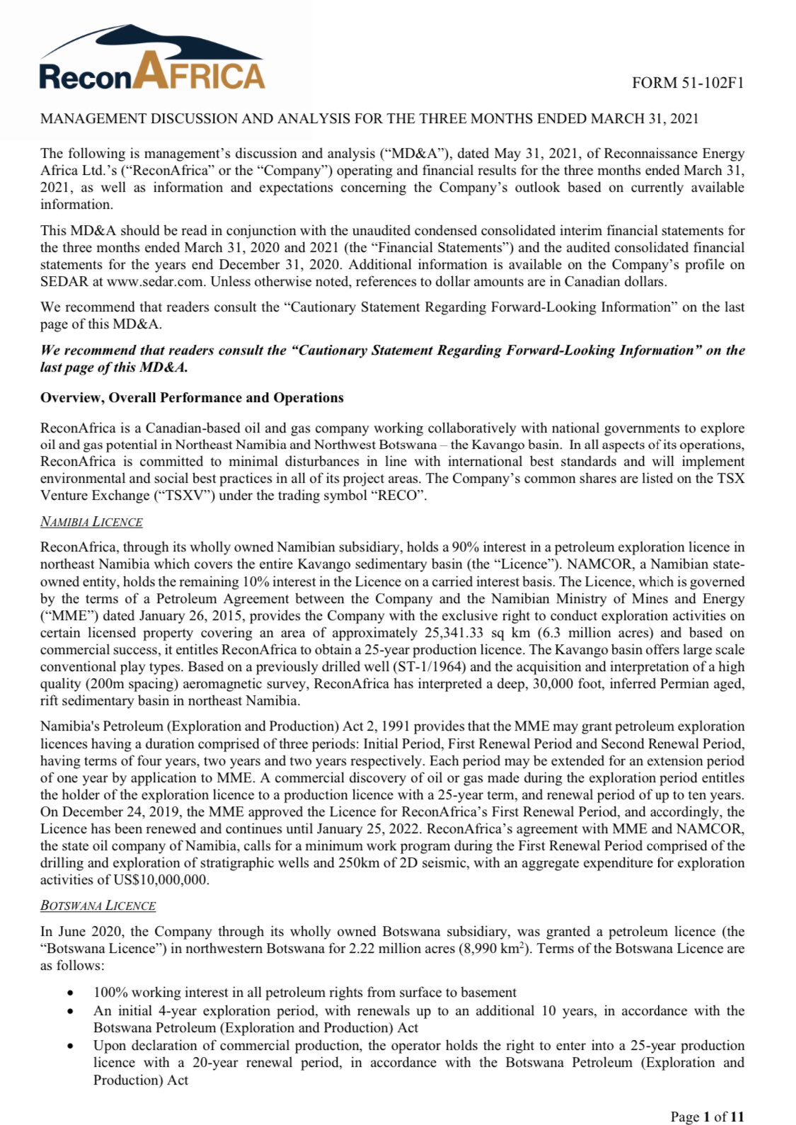 Real-time trade and investing ideas on Reconnaissance Energy Africa Ltd RECAF from the largest community of traders and investors. Since Q1 2021 Recon Africa and their joint venture partner NAMCOR the state-owned oil company of Namibia have commenced and completed the 1st phase of their oil exploration.